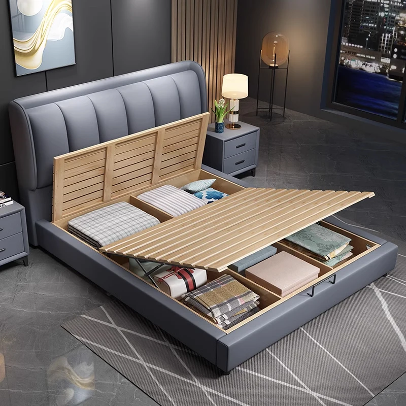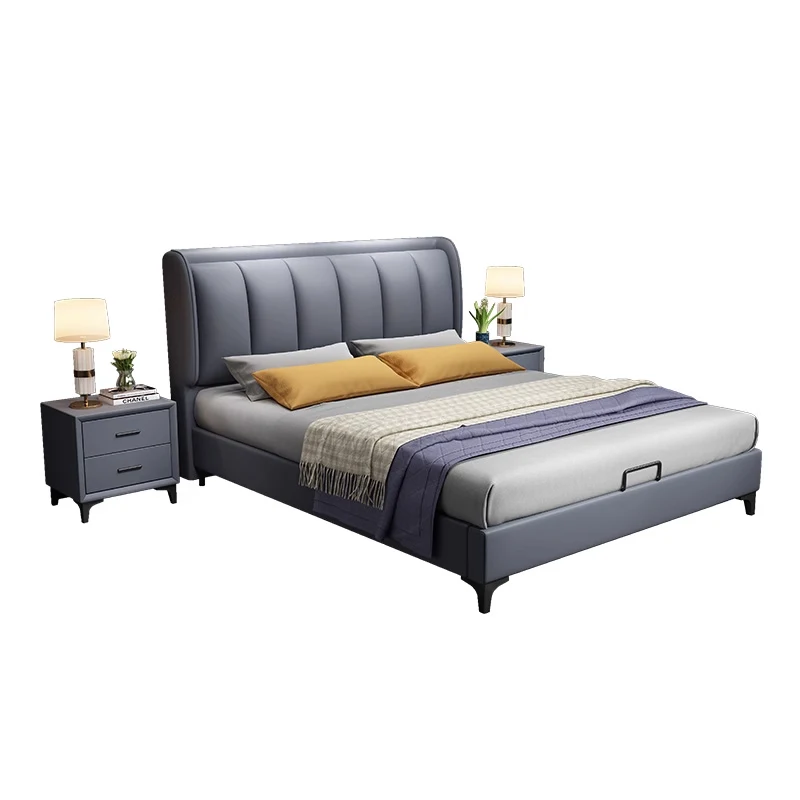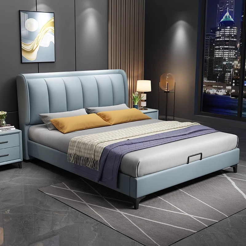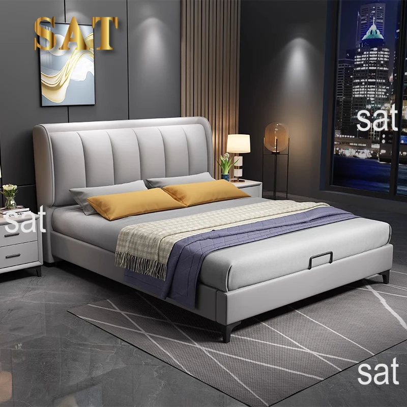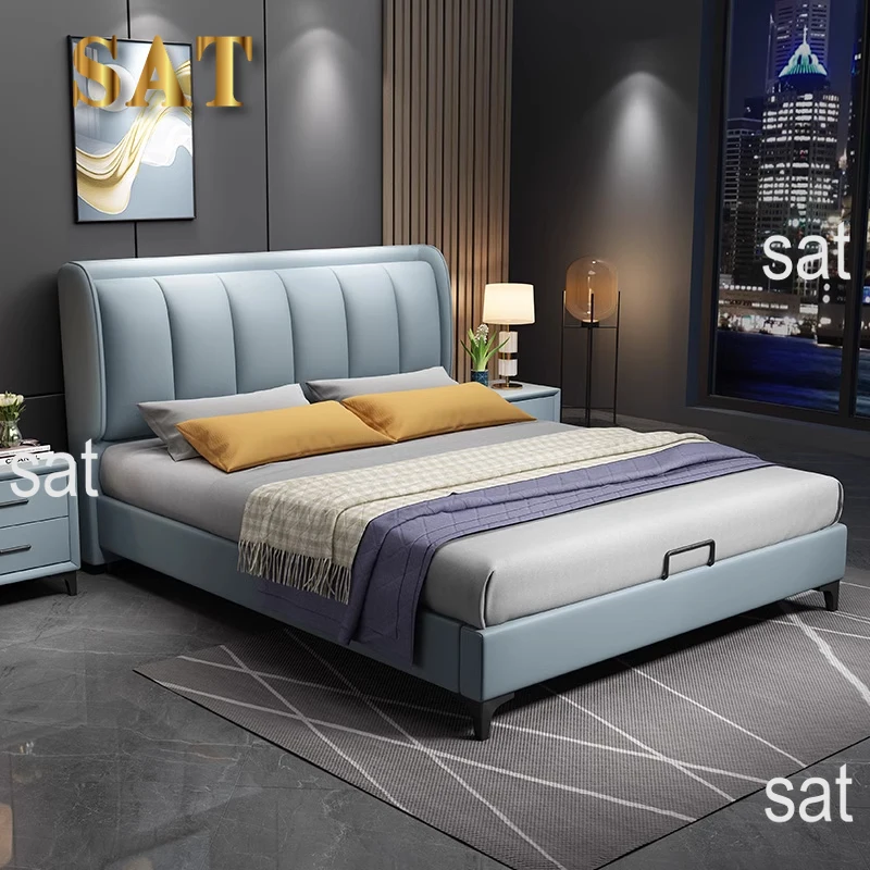 ⁕yModern Wooden Bed Frame Soft Bedroom Furniture Bed Italian Design Bubble Leather Bed