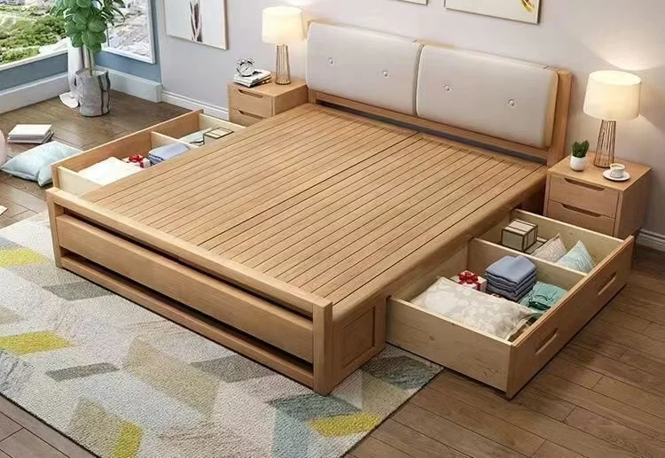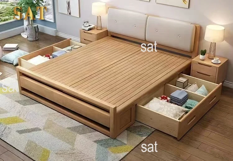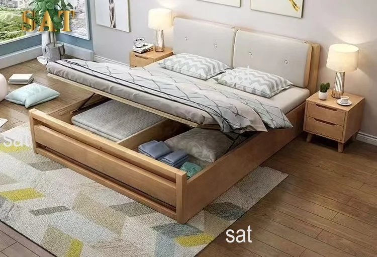 !@2025 Modern Queen King Size Bed Frame Modern Bedroom Sets Furniture Solid Wooden Upholstered Bed With Lift Gas Storage