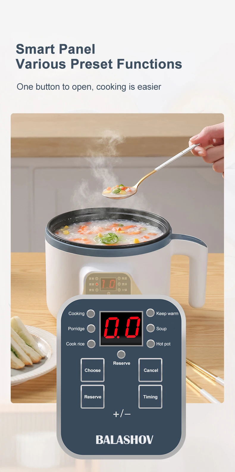 2. Easy to operate electric rice cooker: It only takes two steps to cook, add rice and water, and then click Start.