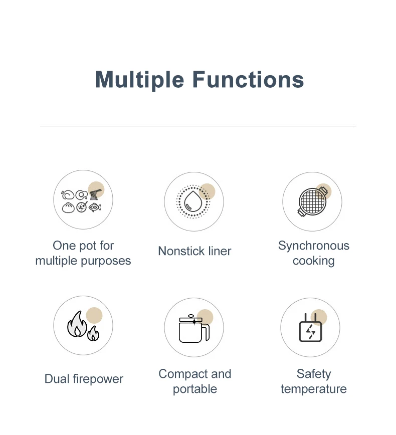 3. Multi functional rice cooker: it can be used for cooking, frying, porridge cooking, hot pot, etc