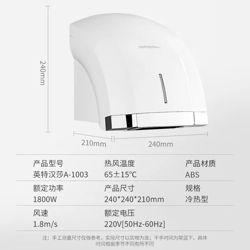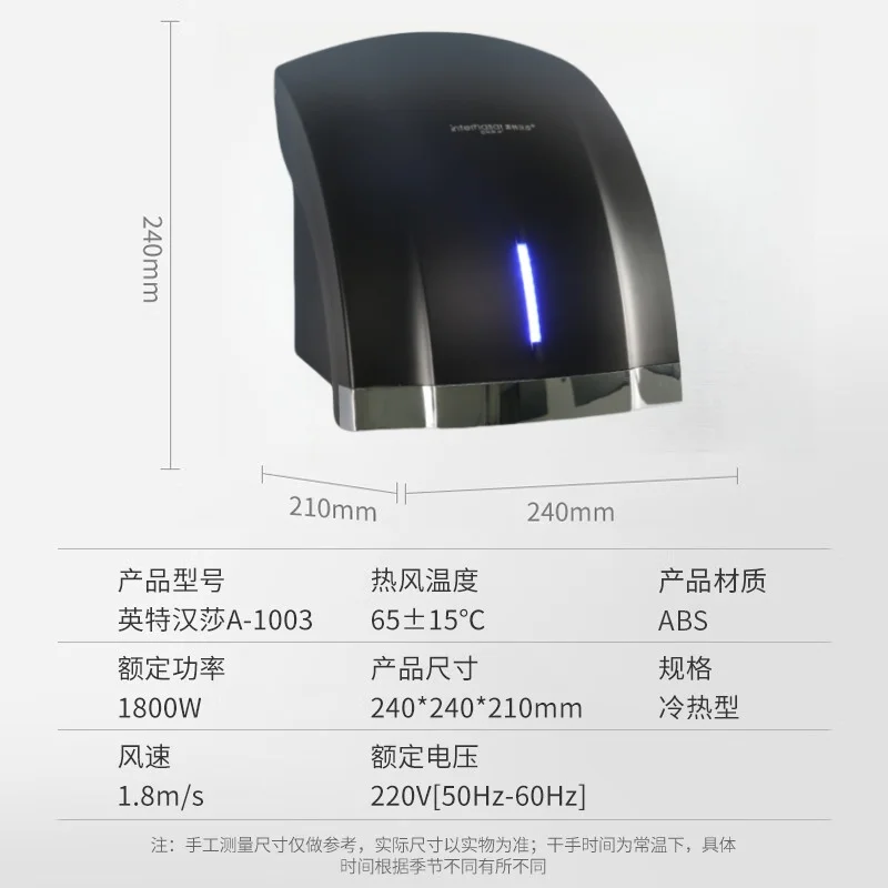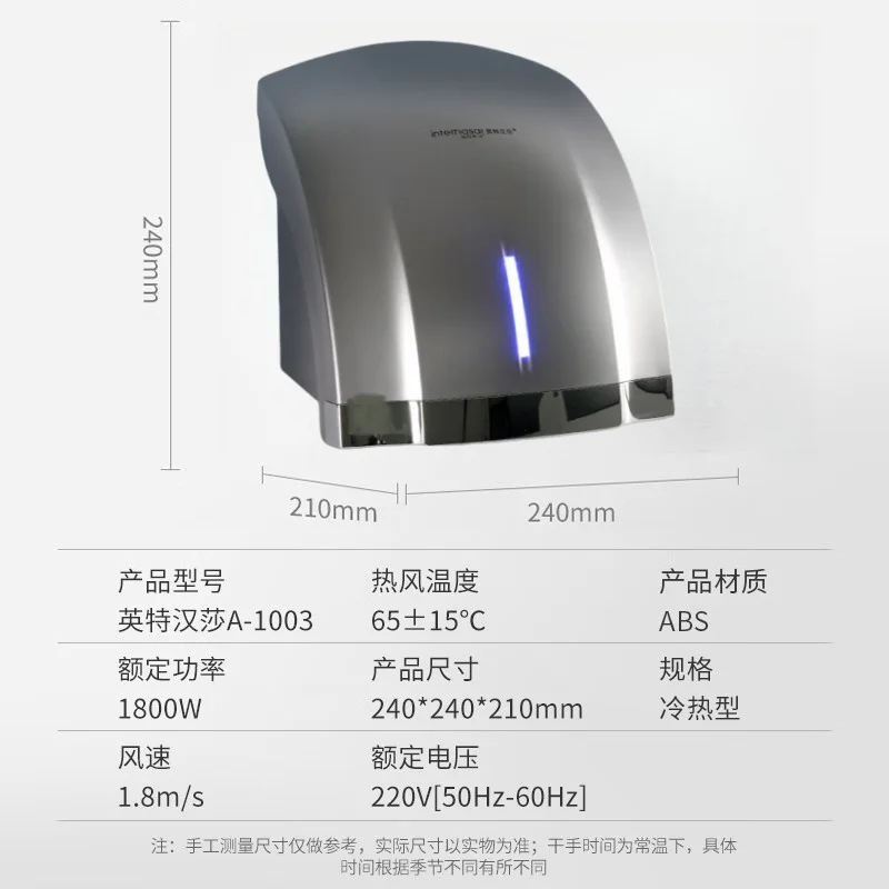 220V  Infrared Induction Wall-mounted Automatic Sensor Bathroom Hand Dryers Cold/Hot Commercial Dryer Machine,High-Speed Drying