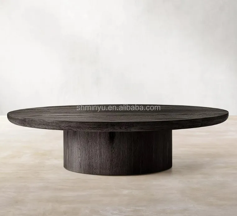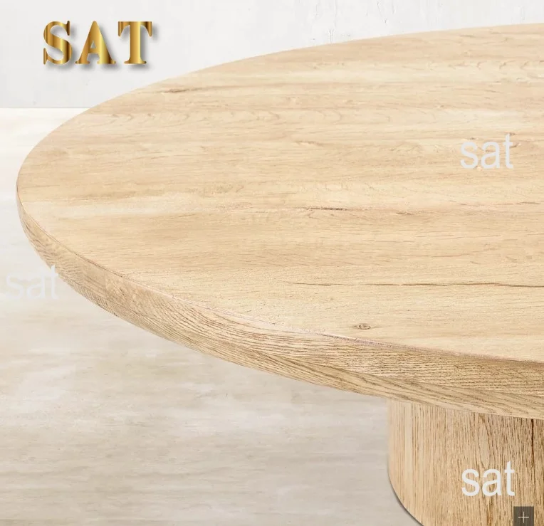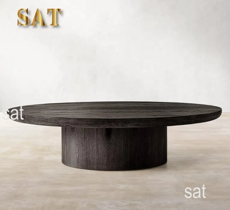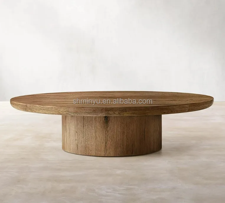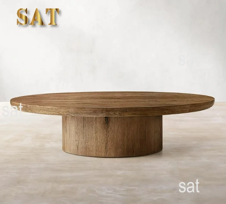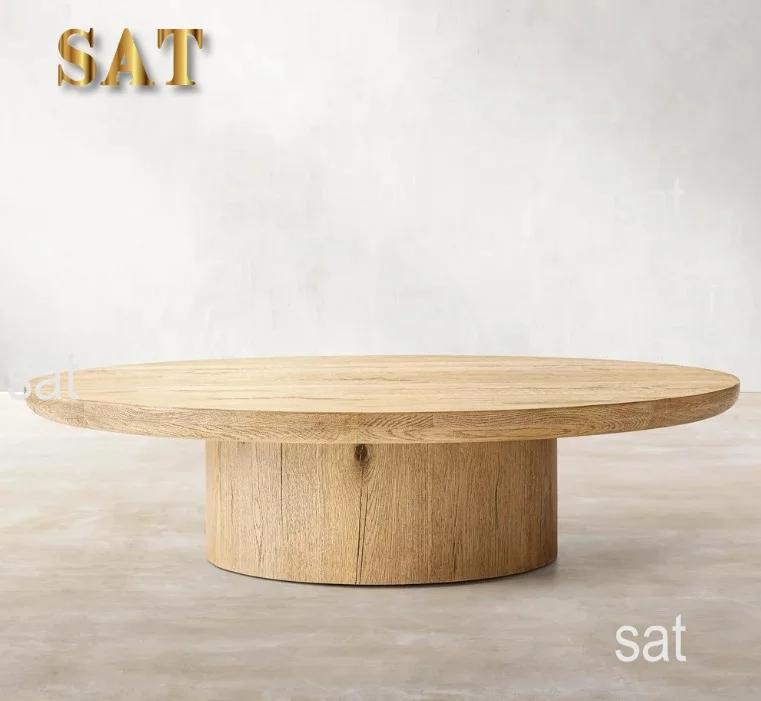 * Modern American Style Round Solid Wood Coffee Table Antique Design Home Living Room Furniture With Oak Rattan Glass Material