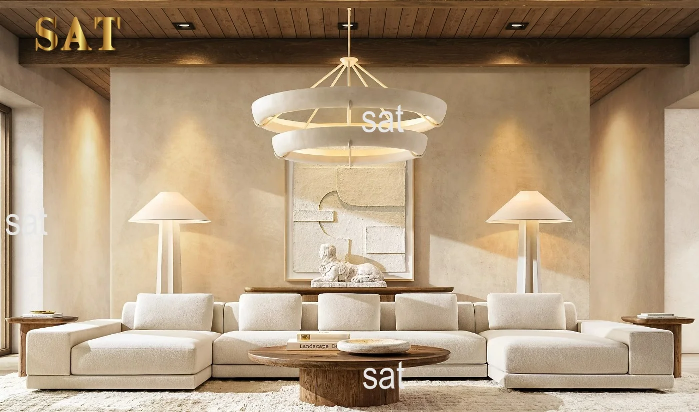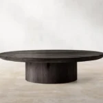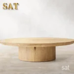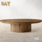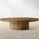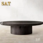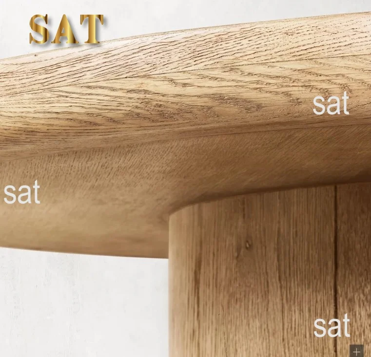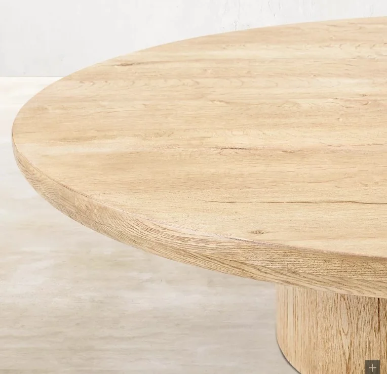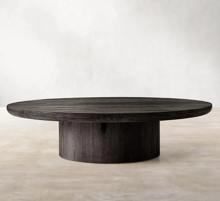 * Modern American Style Round Solid Wood Coffee Table Antique Design Home Living Room Furniture With Oak Rattan Glass Material