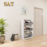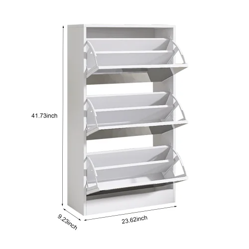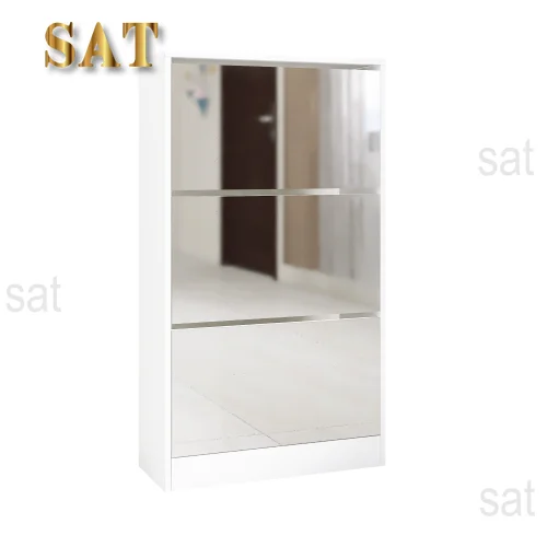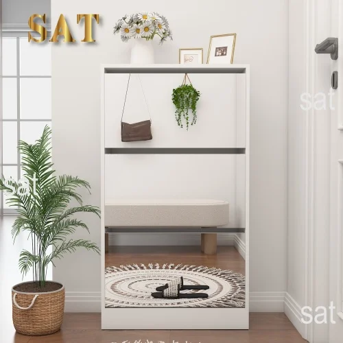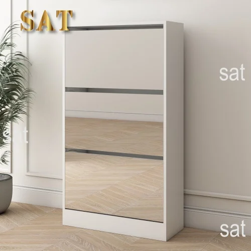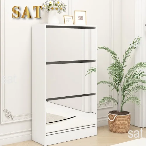 #Modern Narrow Shoe Storage Cabinet Mirror 4 Drawers Wood Slim Shoe Rack 3 Tier Living Room Home Apartment White