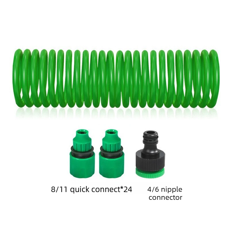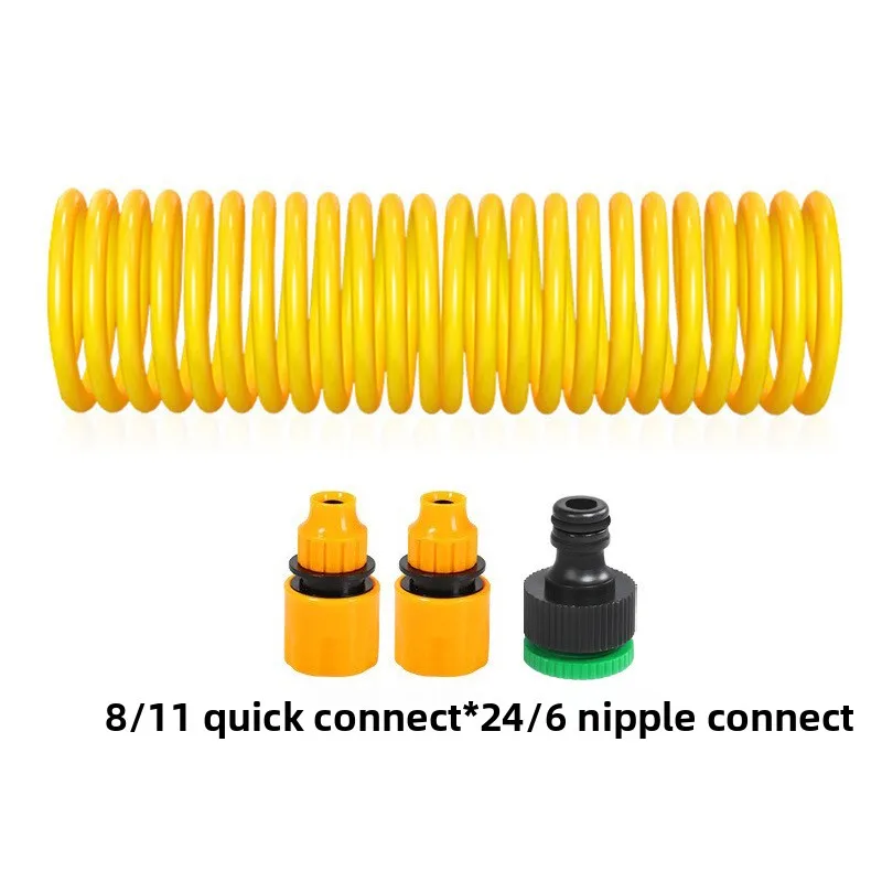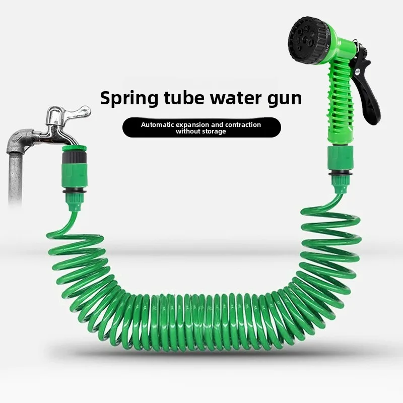 Spiral expansion design: The tube body comes with spiral elasticity, which can be extended to adapt to long-distance watering when in use. When not in use, it automatically shrinks into a compact shape, saving space and making organization more worry free.